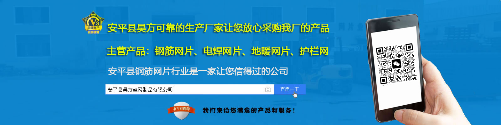安平縣坤鼎絲網(wǎng)制品有限公司(原安平縣鑫平護(hù)欄網(wǎng)廠)位于安平縣油子開(kāi)發(fā)區(qū),是專(zhuān)業(yè)生產(chǎn)各種公路護(hù)欄網(wǎng)、高速公路護(hù)欄網(wǎng)、小區(qū)護(hù)欄網(wǎng)、金屬焊接防盜網(wǎng)、鐵路隔離防護(hù)網(wǎng)、防眩網(wǎng)、防拋網(wǎng)、機(jī)場(chǎng)隔離網(wǎng)、圍網(wǎng)、圍欄網(wǎng)、場(chǎng)地圍網(wǎng)、體育圍網(wǎng)、運(yùn)動(dòng)場(chǎng)圍網(wǎng)、小區(qū)圍網(wǎng)、生活區(qū)圍網(wǎng)、倉(cāng)庫(kù)隔離網(wǎng)、圍山網(wǎng)、圍墻網(wǎng)、建筑用網(wǎng)的專(zhuān)業(yè)廠家。 本廠以“質(zhì)量求生存,客戶(hù)是上帝,交貨及時(shí),價(jià)格合理,服務(wù)周到”的宗旨為廣大客戶(hù)服務(wù);本著“質(zhì)量求生存,信譽(yù)謀發(fā)展”的生產(chǎn)原則,贏得了廣大新老客戶(hù)的好評(píng)。多年來(lái),我們憑借吸納進(jìn)的技術(shù)、過(guò)硬的質(zhì)量、良好的信譽(yù)和服務(wù)、與多家客商建立了穩(wěn)固的供貨關(guān)系,客戶(hù)遍及全國(guó)各地和地區(qū)。經(jīng)過(guò)多年的發(fā)展,我廠一貫堅(jiān)持以科學(xué)的管理和嚴(yán)格的檢驗(yàn)制度,確保防護(hù)網(wǎng)產(chǎn)品的合格率,并以可靠的信譽(yù)和服務(wù),贏得了新老客戶(hù)的信譽(yù)和贊譽(yù)。...